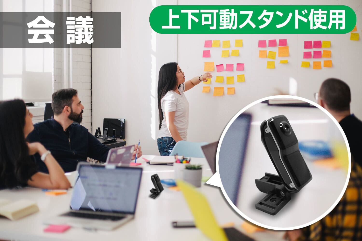 ●上下可動スタンド使用で会議に。