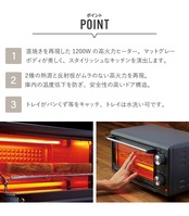 ◆2種類(カーボンヒーター・石英管ヒーター)の熱源と反射板で、1200Wのハイパワーでムラなく焼き上げます。